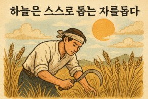 이 표현은 영어 격언 “Heaven helps those who help themselves”에서 유래한 말로, 서양과 동양 모두에서 통용되는 삶의 지혜로 받아들여집니다.