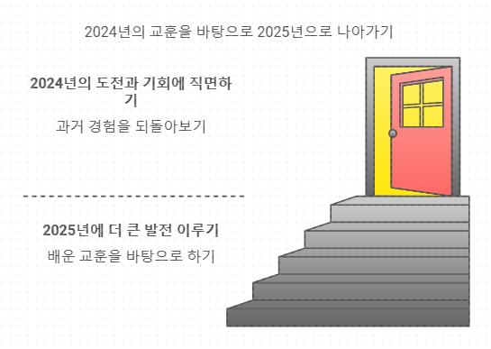 2024년의 경험을 바탕으로 2025년에는 더욱 발전된 모습으로 나아가기를 기대합니다. 지속적인 개선과 혁신을 통해 목표를 달성하고, 더 나은 결과를 만들어 나가겠습니다.