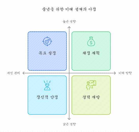 미래 설계는 신중년이 자신의 삶을 주도적으로 관리하고, 원하는 방향으로 나아갈 수 있도록 돕습니다. 이를 통해 다음과 같은 이점을 얻을 수 있습니다: