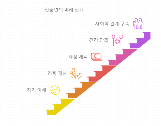신중년이 미래를 설계하기 위해 고려해야 할 몇 가지 전략은 다음과 같습니다:
