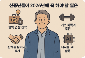 신중년(보통 40~60대 전후)이라면 2026년은 *“준비를 미루면 기회가 줄어들고, 준비하면 선택지가 넓어지는 해”*가 될 가능성이 큽니다.
