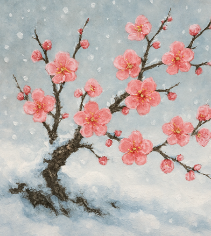 👉 정리하자면, "눈 속에서 피어나는 매화"는 고난 속에서도 꺾이지 않는 의지, 희망, 고결한 삶의 자세를 뜻하는 은유적 표현입니다.