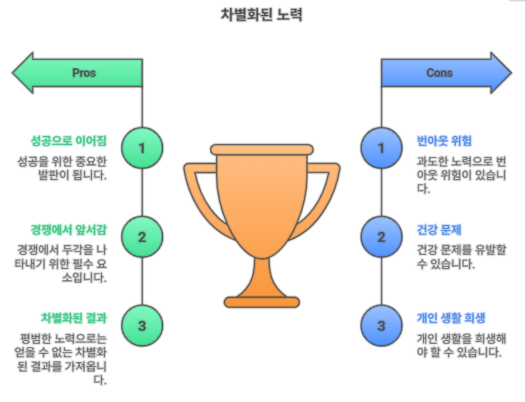 남들보다 먼저 시작하는 것만큼 중요한 것은 더 부지런히 노력하는 것입니다. 이는 단순히 시간을 많이 투자하는 것을 의미하는 것이 아니라, 효율적으로 시간을 활용하고, 끊임없이 배우고 성장하는 것을 의미합니다.