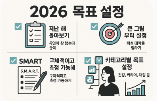 2026년 목표를 잘 세우려면 명확성, 현실성, 그리고 실행 가능성이 핵심입니다. 아래 단계로 접근해보세요: